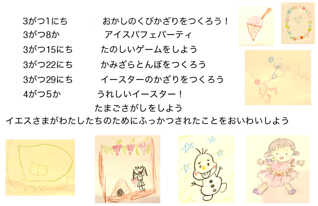 3月の子どもの教会の予定です、どうぞおいでください、お待ちしています!