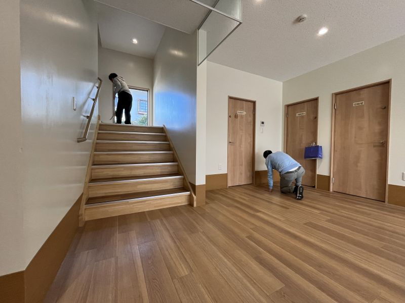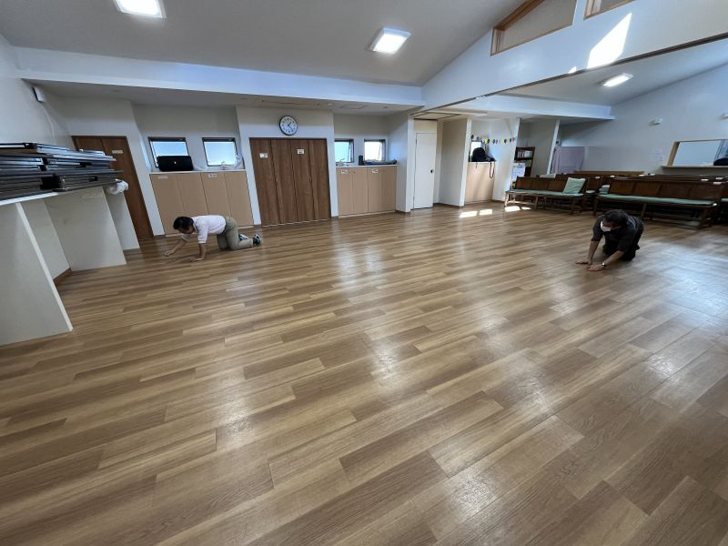 11月24日 午後は集会室の汚れをおとして、ワックスをかけて、テーブルやパイプ椅子を戻しました