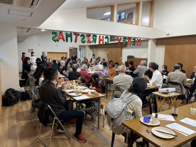 12月21日 主日礼拝では嬉しいバプテスマ式! 礼拝後の愛餐会でお祝いしました