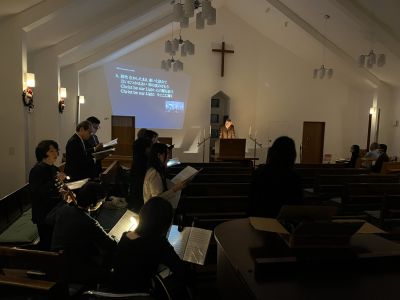 12月24日 19:30から 燭火礼拝(キャンドルサービス) 聖歌隊のリハーサルの様子です